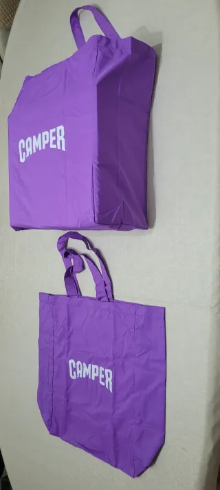 2 Bolsas Tela Camper. Muy prácticas y resistentes. Material 100% algodón. Medidas: 49cm X 49cm X 23cm