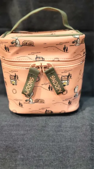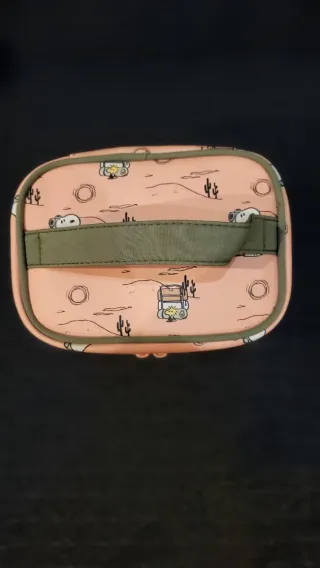 Neceser con un divertido estampado de Snoopy en un día de campo. - Diseño con temática paisajes desérticos. - Cierre de cremallera. - Asa superior para facilitar su transporte. - Dos tiradores de cremallera con la etiqueta Snoopy.