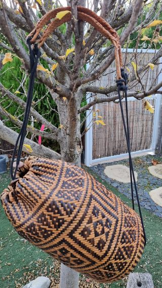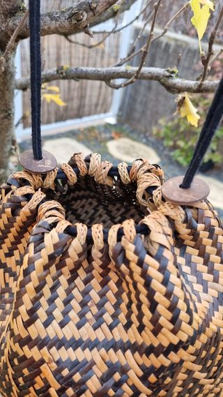NUEVA REBAJA. Mochila sin estrenar, siempre bien guardada. De caña o junco, es ideal para salir de paseo, al campo o a la playa con las cosas que necesitas en tus salidas. Se trata de un modelo muy original que no verás fácilmente, lo que lo hace muy exclusivo. Es cómodo de llevar y pesa muy poco. - Tejido de fibras naturales en tonos marrones y negros. - Asa trenzada. - Cierre de cordón.