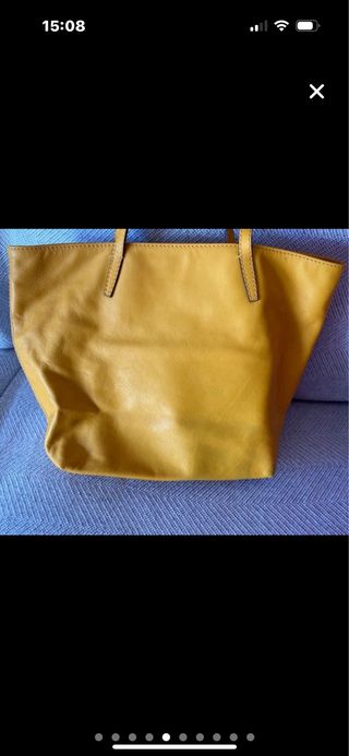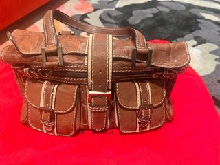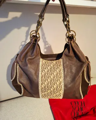 Bbolso de piel XL de la marca Carolina Herrera New York del año 2003. Bolso original ( como ya ha verificado la plataforma tras eliminar el anuncio ) Material: Piel texturizada. Color: Marrón. Diseño con correas y hebillas metálicas. Compartimento principal con cierre cremallera. Dos compartimentos exteriores. No tiene la correa para llevar en bandolera ( se pueden adquirir aparte ) Medidas : Ancho 50 centimetros. Alto 35 centimetros. La base tiene 21 x 50 Tiene forma triangular. Casi no se ha usado. Esta impecable.