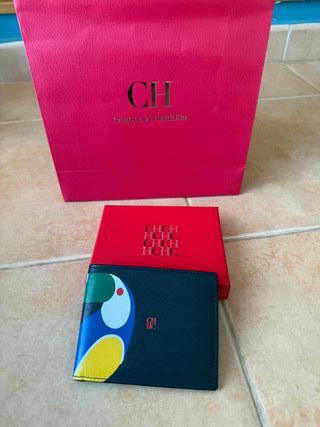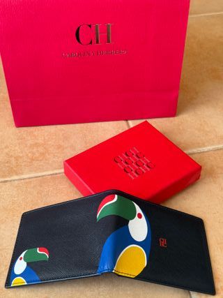 Elegante cartera de Carolina Herrera con un diseño llamativo. - Estampado de tucanes multicolor. - Logo de CH en el interior. Nueva y original, con su funda guardapolvo y caja regalo Precio en oferta 125 € Gastos del envío certificado, más el seguro incluido 14 €