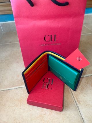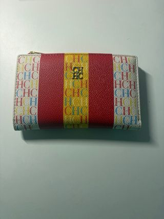 Monedero comoletamente nuevo con un diseño llamativo, lo vendo porque no me gusta - Estampado CH multicolor. - Detalles de rayas rojas y amarillas. - Incluye caja y funda protectora. Viene tal cual en el plastico y la caja