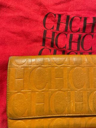Elegante cartera grande de Carolina Herrera. Se entrega sin funda guardapolvo - Diseño con monograma CH grabado. - Acabado en tono dorado y amarillo.