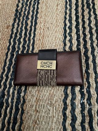 Elegante cartera de Carolina Herrera. Tiene muchos compartimentos para billetes, tarjetas y monedas Mide 18,5x10cm - Diseño en piel marrón. - Detalle de logo CH en dorado. - Cinta con monograma CH.