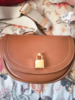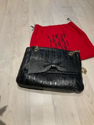 Elegante bolso bandolera de piel con un diseño moderno y un cierre de candado dorado. - Piel de alta calidad. - Detalle de costuras blancas. - Candado dorado con logo CH. - conservo ticket de compra