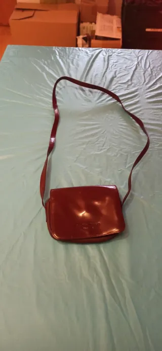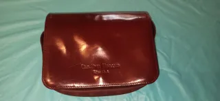 Elegante minibolso de la marca Carolina Herrera. - Color marrón con matices en rojo. - Acabado brillante. - Diseño clásico con solapa. - Grabado del nombre de la marca y New York en la parte frontal. - Etiqueta interior CH y hebilla CH