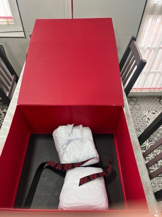 Elegante caja de Carolina Herrera con el logo CH. - Color rojo vibrante. - Diseño cuadrado.