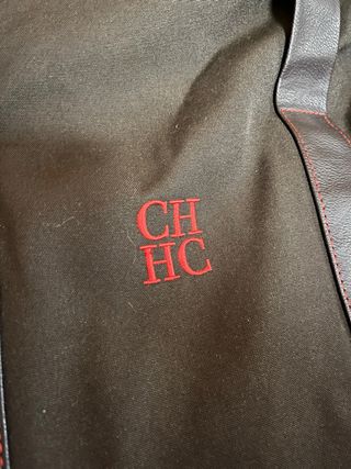 Elegante bolsa de Carolina Herrera. - Diseño moderno y espacioso. - Asas de piel. - Logo bordado en rojo.
