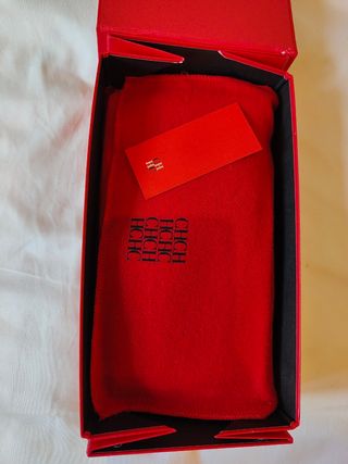 Elegante caja vacía de Carolina Herrera, ideal para regalo. Tiene un diseño navideño precioso en rojo y dorado. - Perfecta para guardar tesoros o como elemento decorativo. - La caja está en excelentes condiciones.