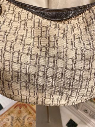 Bolso de mano con el distintivo logo de CH. - Diseño con monograma. - Correa ajustable. - Cierre de solapa. En la última foto se puede apreciar correa cuarteada se puede acortar y el bolso está perfecto