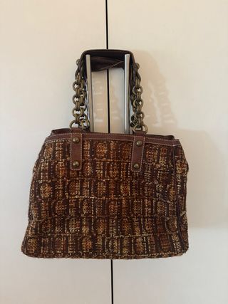 Bolso Carolina Herrera, estampado tela tipo tweed, muy buen estado. Medidas ancho 37cm x 24 cm - Diseño con estampado de la marca. - Asas de cadena y cuero. - Acabados en marrón.
