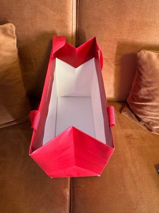 Elegante bolsa de regalo de la marca Carolina Herrera. Medidas: 24’5x22’5x12 cm - Color rojo vibrante. - Con el logo de la marca impreso en blanco. - Incluye asas de cinta rojas.