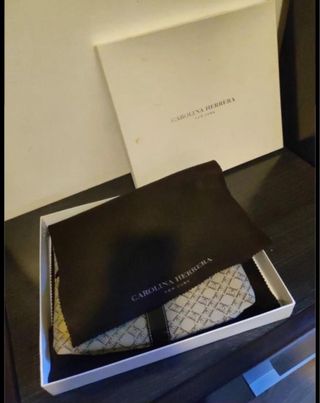 Elegante billetera de cuero Carolina Herrera. - Diseño clásico y funcional. - Acabado en cuero de alta calidad. - Múltiples compartimentos interiores.