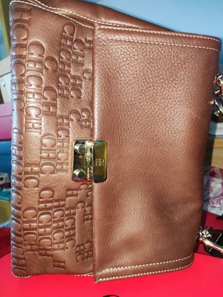 Super oferta!! Elegante bolso de mano Carolina Herrera Ch original en tono dorado. Un accesorio sofisticado con un diseño distintivo. Pvp 790 - Acabado metalizado. - Detalle de monograma CH. - Cadena metálica en las asas. - Cierre de cremallera. - Candado decorativo con llave. No hago reservas Bimba y lola.zara.mango.pedro del hierro.roberto verino.loewe.purificacion García.uterque.parfois.guess.tous.michael kors.furla.marc jacobs.hoss intropia.coach.oysho.berskha.