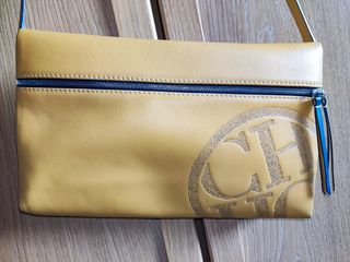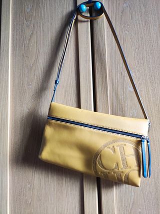 Bolso color mostaza Carolina Herrera. Sólo tiene las esquinas desgastadas. Lo demás está muy bien. Se incluye funda de tela para guardarlo. Bolso perfecto para llevar cruzado