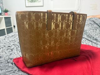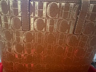 Bolso de Carolina Herrera con un diseño elegante y llamativo. - Color marrón con detalles dorados. - Estampado repetido del logo CH.