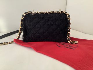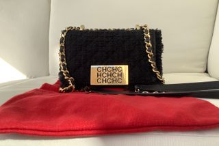 Elegante bolso de Carolina Herrera con un diseño moderno y sofisticado. - Acabado en tweed negro. - Detalles en cadena dorada. - Placa frontal con logo. - Incluye bolsa guardapolvo.Una sola puesta