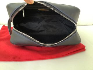Neceser de Carolina Herrera con un diseño elegante. - Exterior en piel negra. - Detalle de logo en relieve. - Incluye bolsa de tela roja.