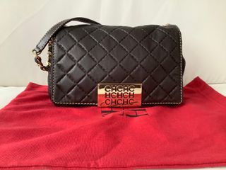 Elegante bolso Carolina Herrera con un diseño acolchado. Sin uso - Acabado en piel. - Detalle de cadena dorada. - Placa metálica frontal con logo.