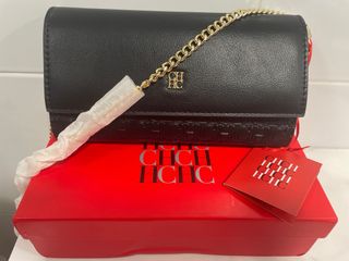 Elegante bolso Carolina Herrera de edición limitada. Un accesorio único y sofisticado. - Diseño con el icónico monograma CH. - Cierre dorado. - Correa de cadena dorada.