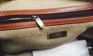 Bolso tanto de mano como de hombro. Bolsillo interior con cremallera. Asas de cuero, ligeramente desgastadas .