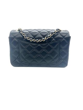 l modelo Chanel Classic Flap es uno de los más codiciados de la firma, símbolo de distinción desde su creación por Coco Chanel y posteriormente reinterpretado por Karl Lagerfeld. Con unas medidas compactas de 19,5 x 12 x 6,5 cm, este bolso Chanel es ideal para llevar lo esencial con estilo, tanto de día como de noche. Su cadena entrelazada en cuero y metal dorado permite llevarlo al hombro o cruzado, aportando versatilidad y sofisticación. Este bolso Chanel de segunda mano se encuentra en excelente estado, con la piel en perfectas condiciones, sin marcas visibles y herrajes dorados brillantes. Barcelona 0229