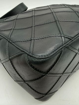 Este bolso Chanel vintage de hombro en piel de cordero de Mongolia color navy refleja el lujo atemporal de la maison. Con acolchado romboidal y charm con logo CC en metal plateado, destaca por su elegancia discreta. El interior forrado en piel y su silueta estructurada lo hacen perfecto para el día a día. Mide 20 x 25 x 11 cm y presenta signos de desgaste visibles en esquinas y cuero, sin comprometer su esencia. Este bolso Chanel de segunda mano es una oportunidad única de adquirir una pieza icónica con historia y carácter. Madrid-Barcelona 8161
