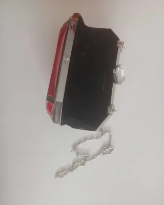 Elegante bolso de mano para ocasiones especiales. - Diseño con detalles brillantes. - Cadena metálica para llevar al hombro.
