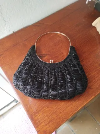 Vendo bolso bombonera de fiesta, con un diseño único muy elegante. - Cubierto completamente de pequeñas cuentas. - Asa trenzada para llevarlo cómodamente. - Cierre con cremallera e interior con forro. - Muy manejable.