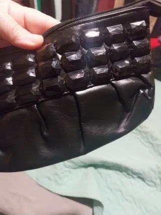 Elegante bolso de mano para ocasiones especiales. - Material: Polipiel. - Diseño con tachuelas decorativas. - Cierre de cremallera. - Incluye asa de muñeca.