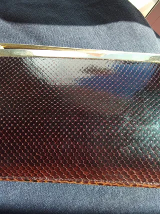 Elegante bolso de mano vintage, una pieza auténtica de los años 50. - Confeccionado en piel con un acabado brillante. - Diseño clásico con cierre metálico dorado.