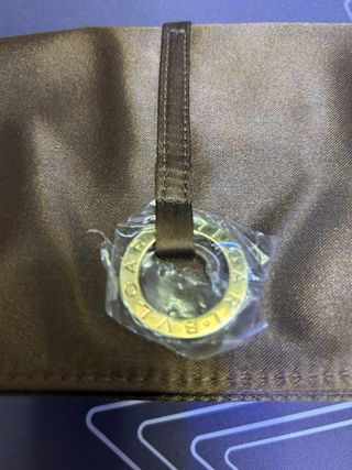 Neceser o bolso de mano de la marca Bulgari, con un elegante diseño. - Color marrón con detalles dorados. - Cierre con iman y detalle de anilla. - Material satinado.