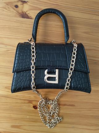 Color negro con cadena,dispone de un bolsillo por dentro,usado sólo en una fiesta