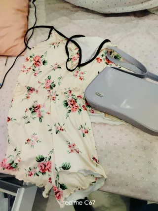 Conjunto de dos piezas: un conjunto de picardías con estampado floral y un bolsito de fiesta o de vestir - Picardías con tirantes finos y detalle de volantes. - Bolso tipo hombro en color malva. No hago envíos por ONTIME no son fiables ni seguros. Prefiero INPOST QR