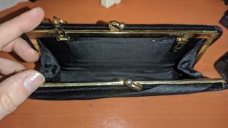 Bolso fiesta , color negro. se puede llevar colgado del hombro, también tiene un asa más pequeño para llevarlo en la muñeca