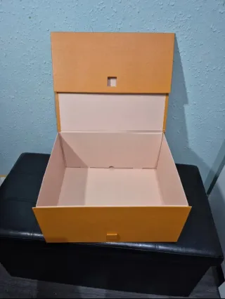 Elegante caja de la marca Louis Vuitton. Es plegable. Medidas 40 x 33 x 19 cm 🚨 Reserva con tiempo que en estas fechas los envíos se complican. Para más bolsas y cajas de lujo coordinados con este artículo, visita mi perfil. - Color naranja y beige.