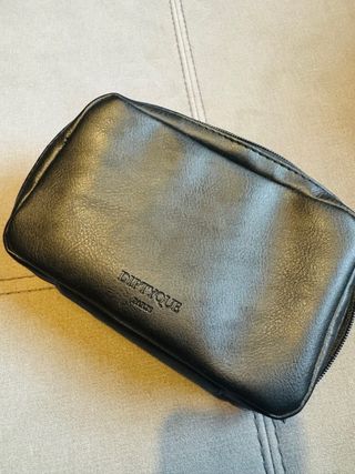 Elegante neceser de la marca Diptyque, perfecto para llevar tus esenciales de viaje o tocador. - Material: Piel sintética. - Cierre de cremallera.