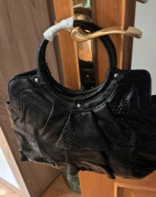 Elegante bolso con acabado que imita la piel de cocodrilo. - Diseño estructurado. - Asa de mano. - Cierre con detalle metálico dorado. - Asa regulable