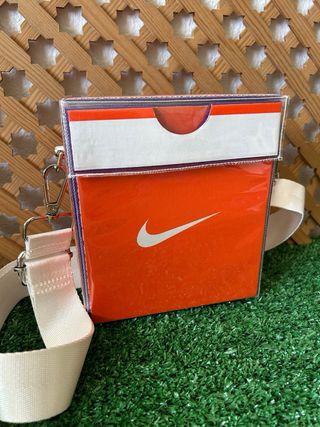 Bolso Nike con un diseño llamativo. - Color principal naranja con detalles en blanco. - Correa ajustable para mayor comodidad.