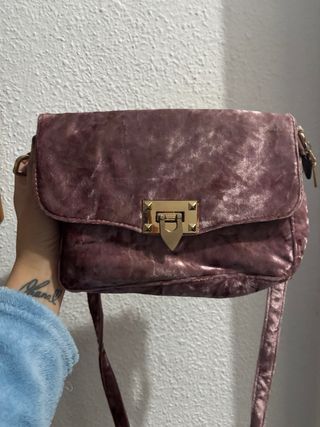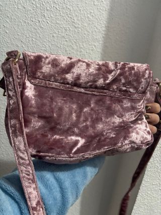 Bolso de terciopelo en un bonito tono rosa. Su diseño es elegante y moderno. - Material: Terciopelo. - Cierre: Dorado. - Correa: Ajustable.