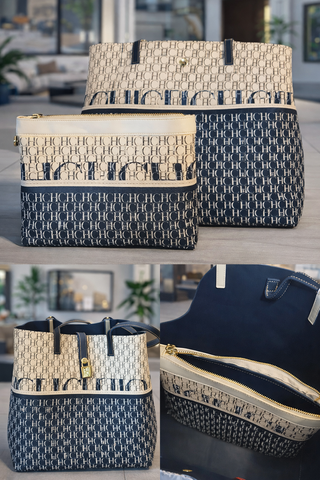 Elegante bolso tote de Carolina Herrera con un diseño distintivo. Incluye su guardapolvo - Combinación de colores beige y azul. - Estampado de monograma CH. - Cierre con detalle de candado dorado.