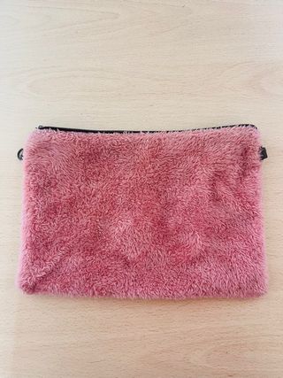Bolso gris con neceser rosa