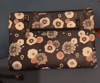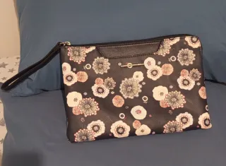 Bolso estilo cartera sin estrenar de Parfois, con monedero incorporado. Puede llevarse en la mano pero también tiene correa para colgarlo al hombro. Bastante rígido, se mantiene en pie solo. Cuenta con 6 compartimentos: 3 con cremallera y 3 con botones (1 de ellos en la parte delantera del hombro, más pequeño que los demás). Cabe un ordenador portátil convencional, no muy grande. Medidas: 37 cm largo. 27 cm alto. 16 cm ancho (capacidad interior, puede que incluso un poco más).
