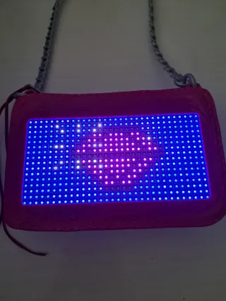 Bolso rosa con panel interactivo de luces LED. - Panel de LEDs personalizable. - Correa de cadena plateada.
