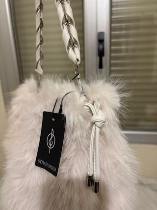 Bolso peludo blanco y beige