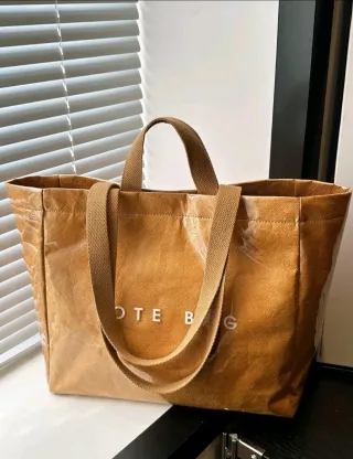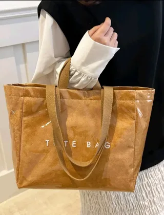 Bolso estilo Tote Bag en color marrón impermeable de pvc. ♡ Disponemos de 14 colores incluidos estilo leopardo y cuadros blanco y negro. Un accesorio práctico y moderno. - Material con textura y acabado brillante - Asas cortas de mano y largas para el hombro, de tela resistentes - Dos bolsillos internos, uno con cremallera - Cierre de presión - Diseño minimalista * Dimensiones: 32,5 cm ancho x 28 cm alto (sin contar largo de las asas) ** Envíos SIN CARGO en Badalona y alrededores. Para Barcelona consultar zona