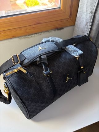 Bolsa de viaje Jordan edición especial "23". ¡Estilo urbano y elegante en uno! 🐊✨ ✅ Diseño Top: Estampado monograma con detalles en piel sintética y oro. ✅ Versátil: Perfecta para viajar, para el gym o como equipaje de mano. ✅ Estado: 10/10 (Nueva). ✅ Ajustable: Correa larga incluida para llevar cruzada. ✨ SÚPER PACK: Si te llevas el set completo (mochila + bandolera + bolsa), ¡te hago un descuento increíble! 📦📩
