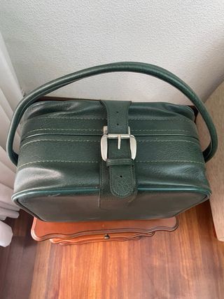 Elegante maleta de mano fabricada en cuero. - Material: Cuero genuino. - Diseño clásico con asa superior. - Cierre de hebilla y correa. - Detalle de costuras visibles.