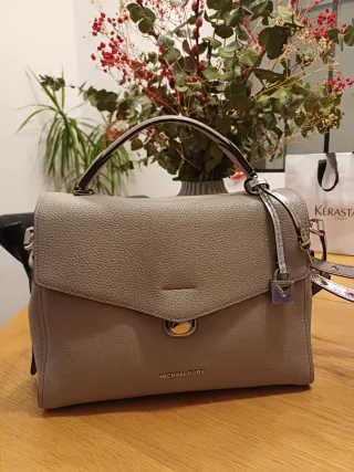 Bolso Michael Kors de piel en color gris. Un accesorio elegante y versátil. -Original 100% - Material: Piel. - Color: Gris. - Cierre con solapa y broche. - Detalle de candado y llave. -Correa larga para llevar cruzado