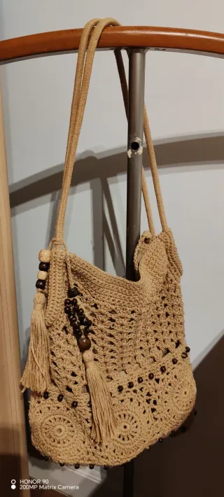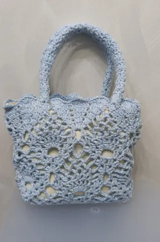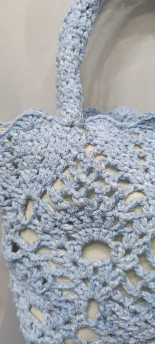 Bolso artesanal con un diseño delicado y un acabado de calidad. - Tejido a mano con hilo. - Forro interior de tela. - Asa cómoda para llevar.